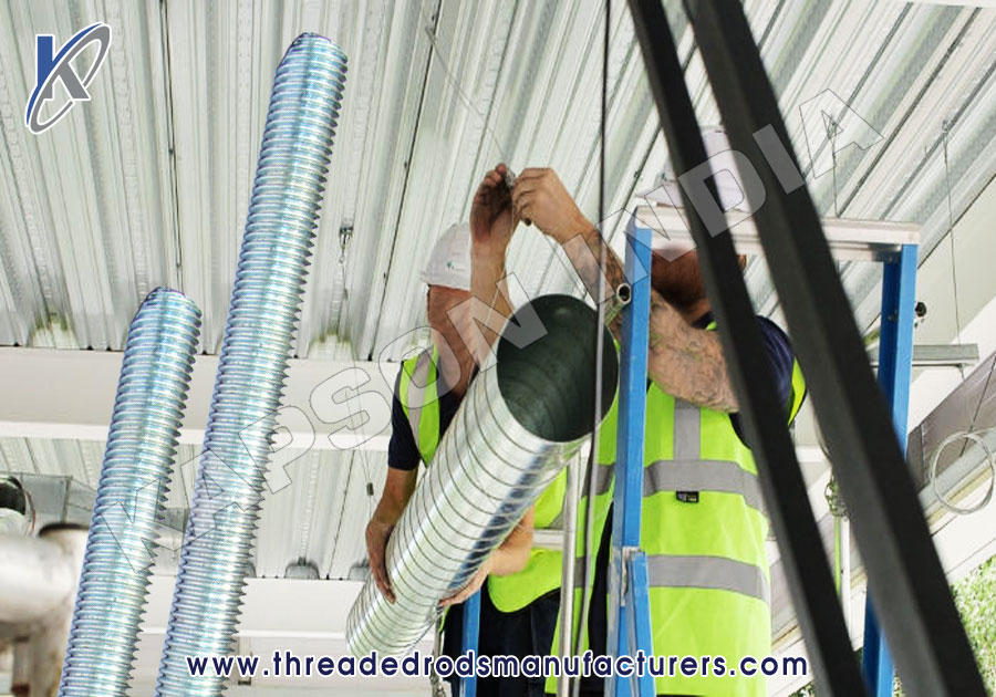 Hanging ductwork, equipment, wiring trays or other building components requires secure structural assemblies. These assemblies are comprised of support threaded rods attached to building anchor points with fasteners. The support threaded rods & bars are often used in custom lengths according to strut channel fittings. The fastener frequently used for downceiling, ducting work, HVAC Systems, hanging systems is threaded rod combined with washers and nuts.